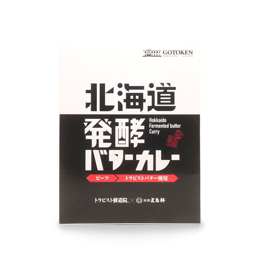 函館カレーで有名な五島軒さんがトラピスト修道院で作られた発酵バターを伝統のカレーに加えて作った「北海道発酵バターカレー」を買ってきました。外箱に”五島軒×トラピスト修道院”のコラボサインもあって「ザ・北海道の名物」って感じが強調されています。