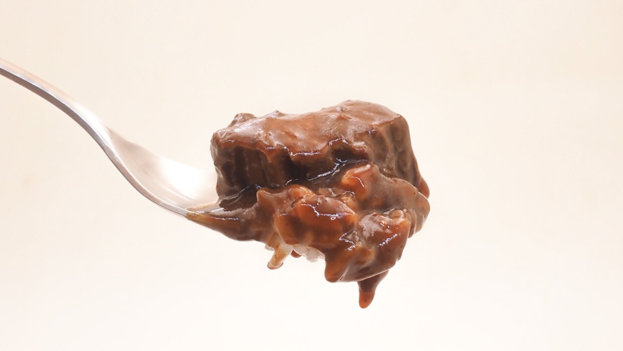 そんな天狗中田本店さんが石川県で肥育される黒毛ブランド牛「能登牛」を使ったカレーを作ったのがこのカレー。能登牛(のとうし)はきめ細やかで上品な味わいのサシが特徴的なブランド黒毛和牛ですが、そんな高級和牛のブロック肉がふんだんに味わえます。